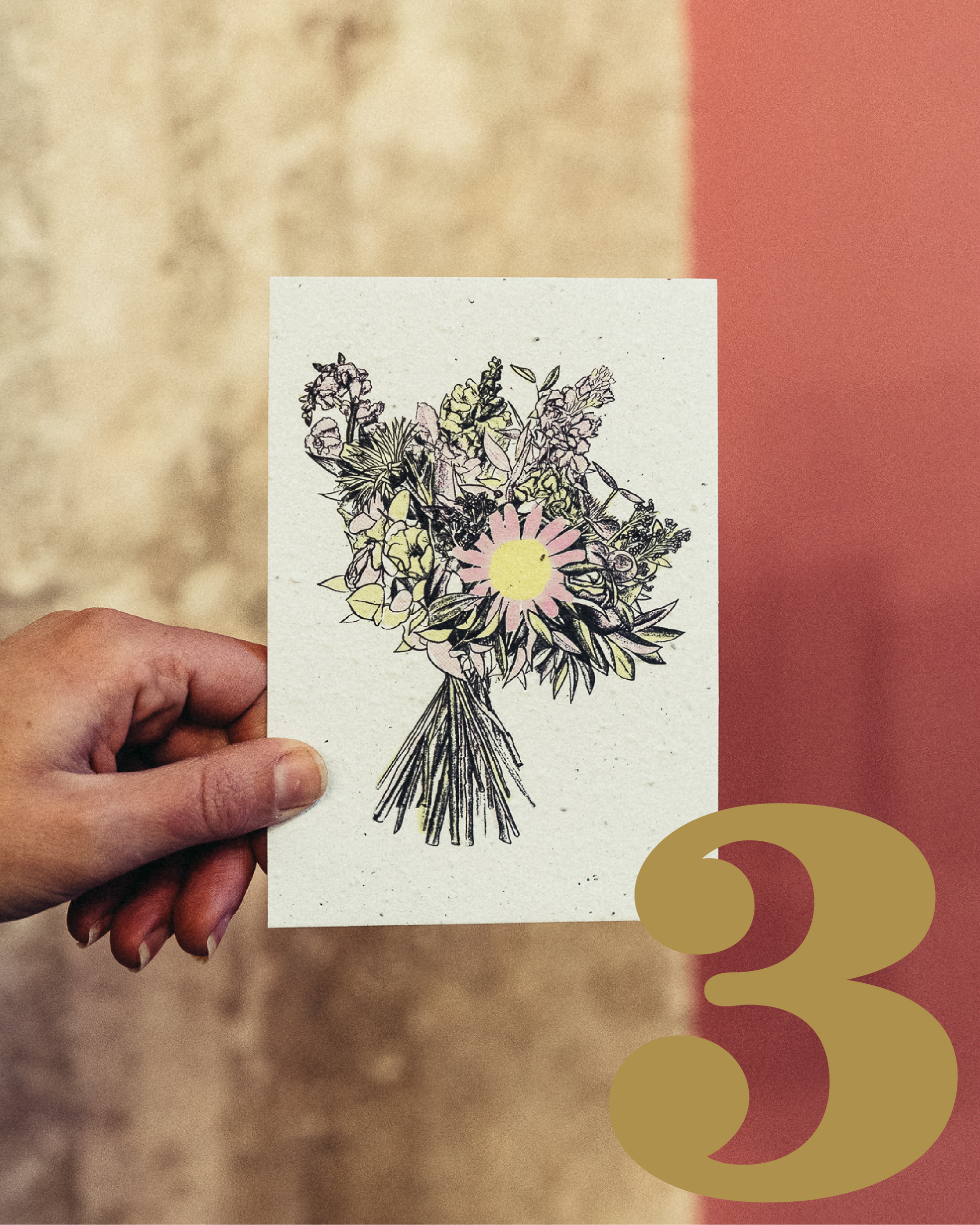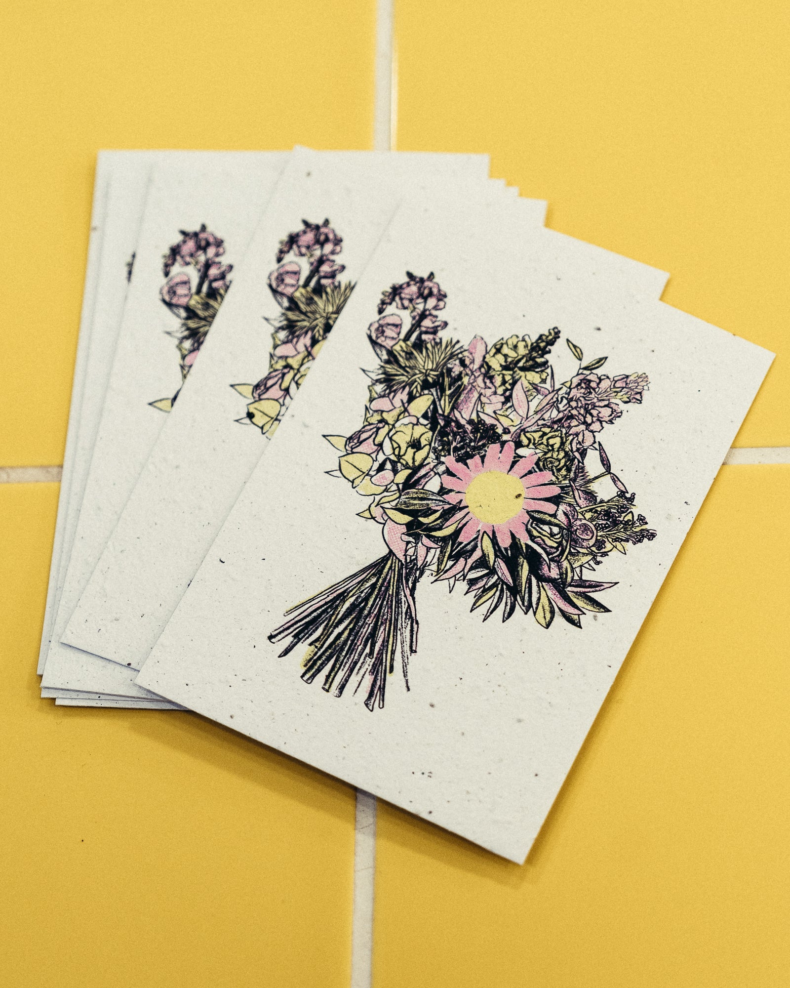 Une jolie carte illustrée qui renferme… de vraies graines de fleurs.