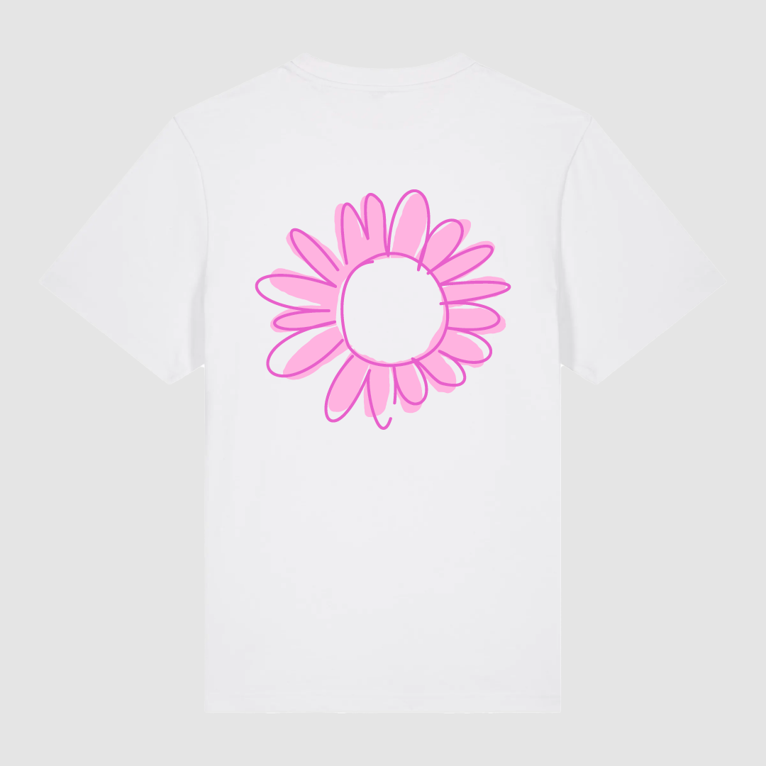 T-Shirt Flower Draw White / Neon Pink